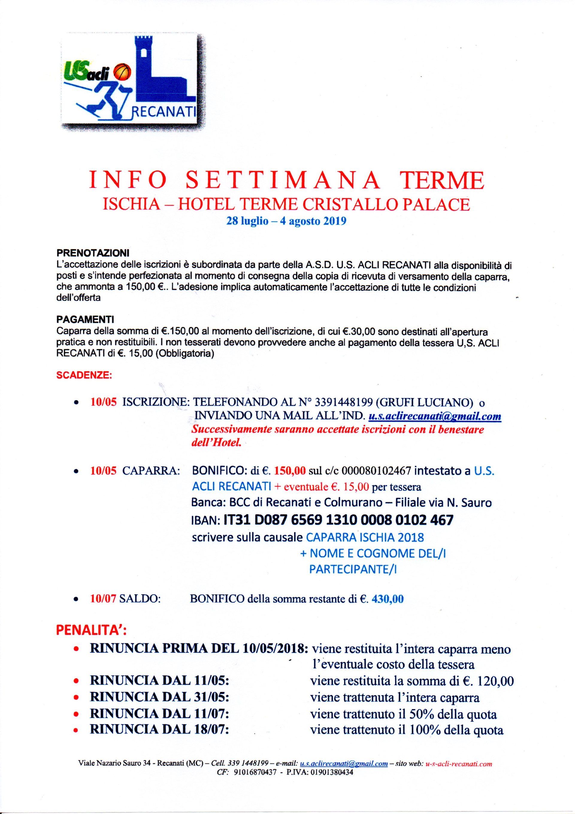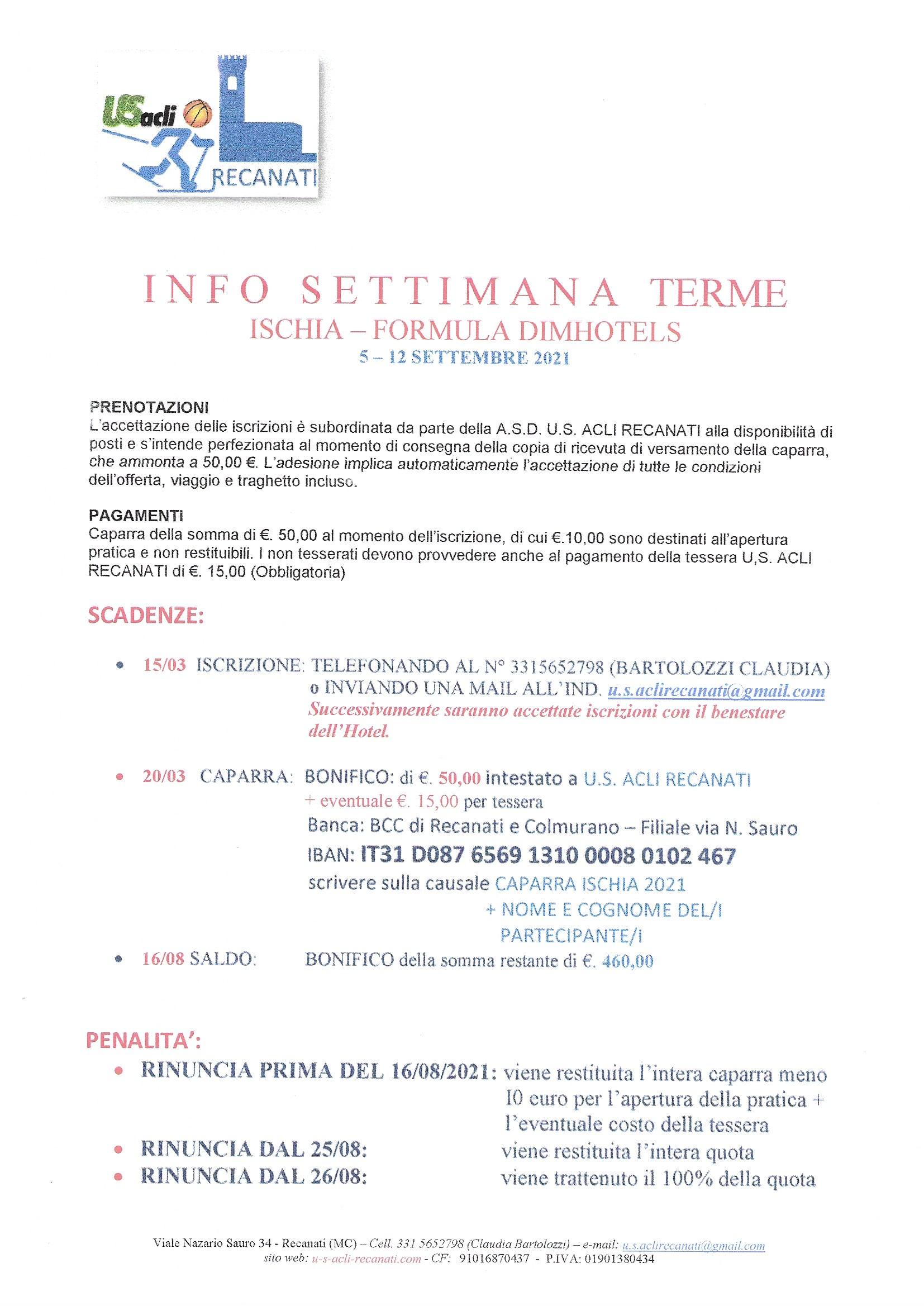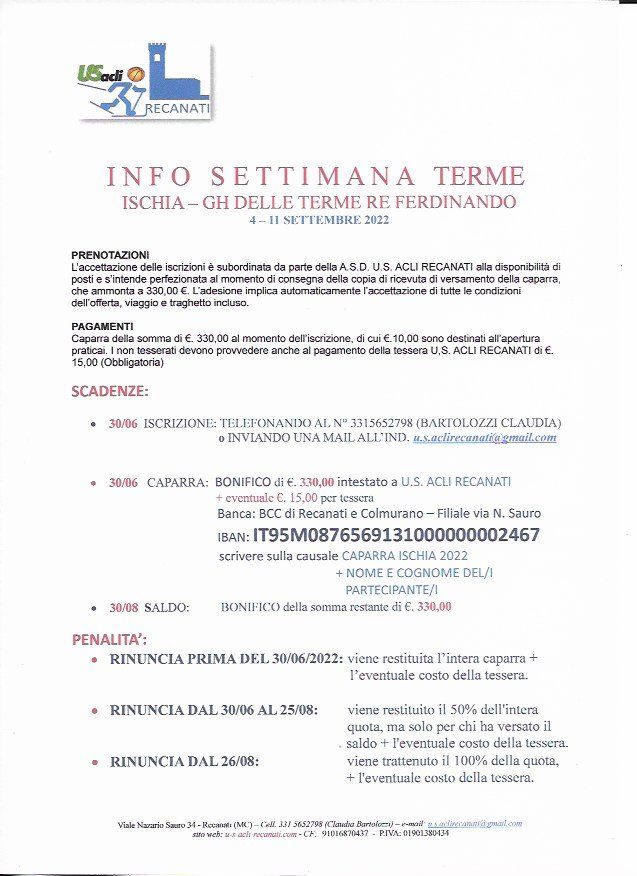 LA DIMHOTELS DI ISCHIA CI HA CONCESSO UNA DEROGA ALLA SCADENZA DELL’ISCRIZIONE FINO AL 31 LUGLIO, QUINDI PERMANGONO LO STESSO PREZZO E LA STESSA CAPARRA.