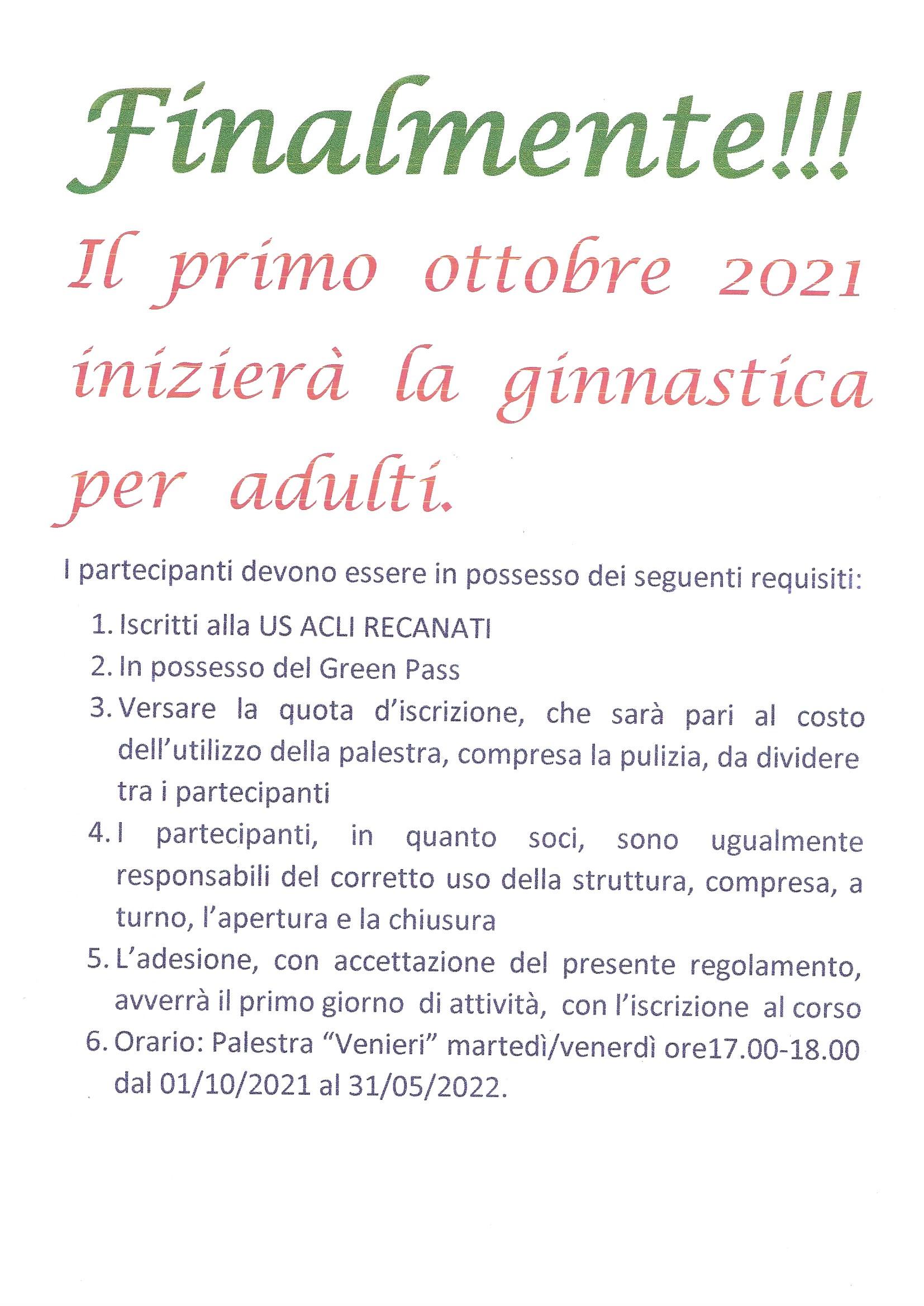 Riparte il Corso di ginnastica per adulti organizzato dalla US Acli Recanati. Quest'anno avremo la collaborazione della associazione KODOKAN Judo Recanati di Mario Mengascini - membro del direttivo - che ringraziamo per la collaborazione.