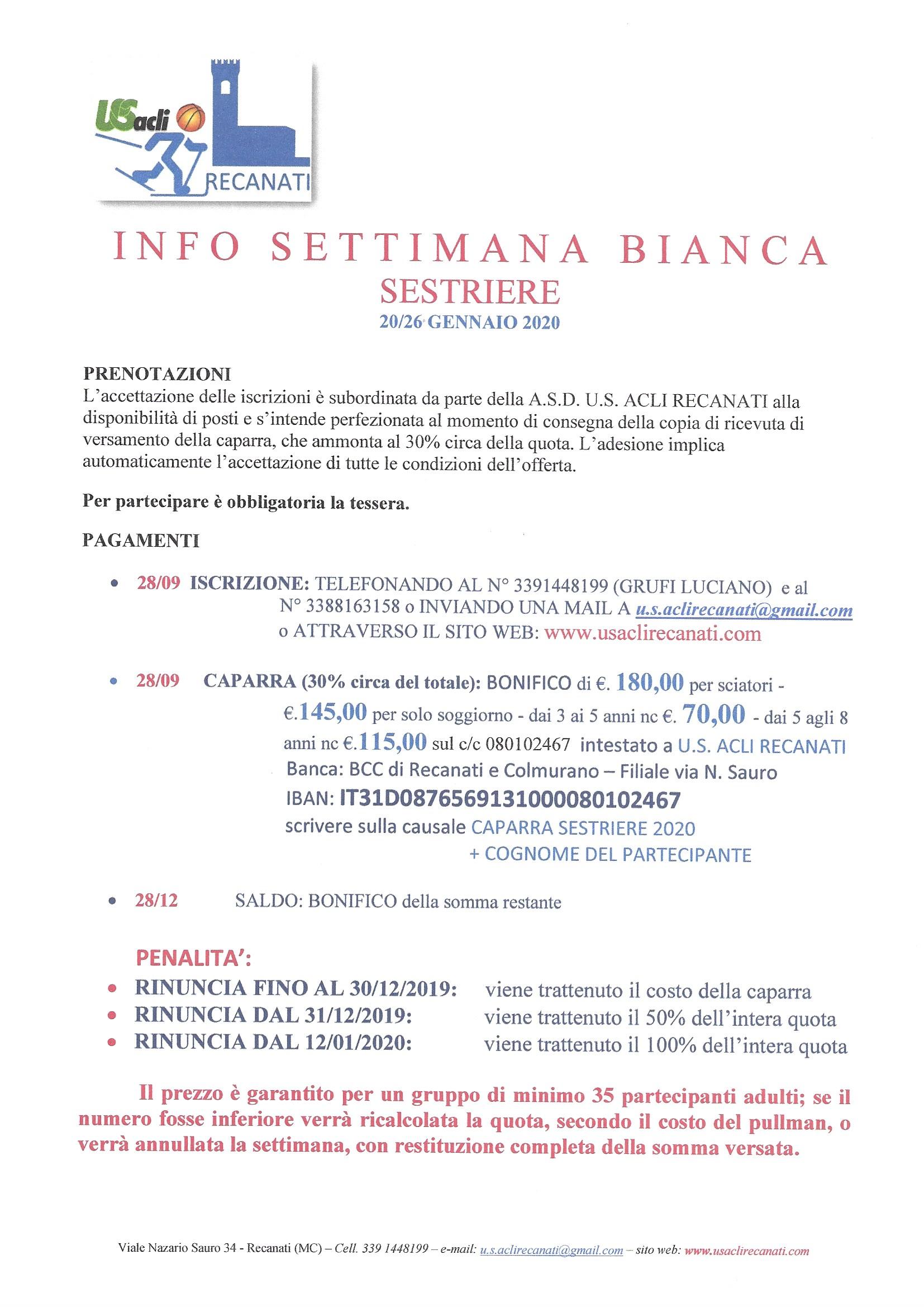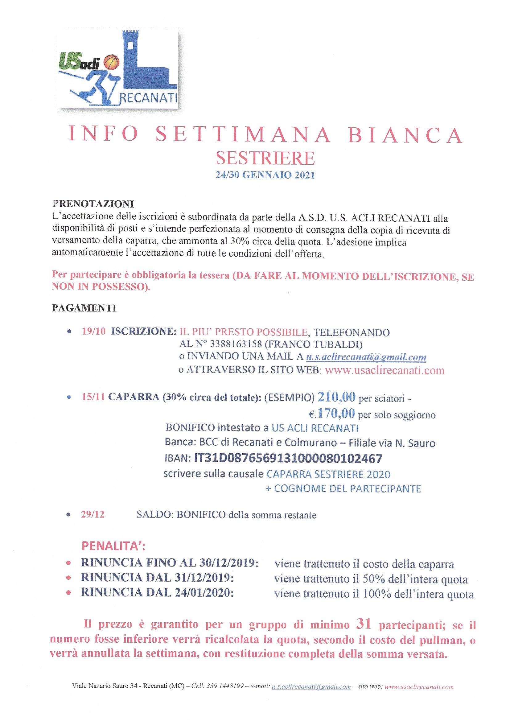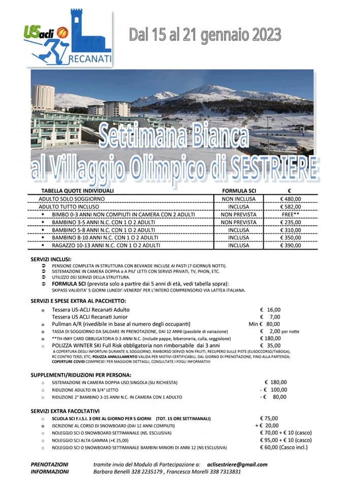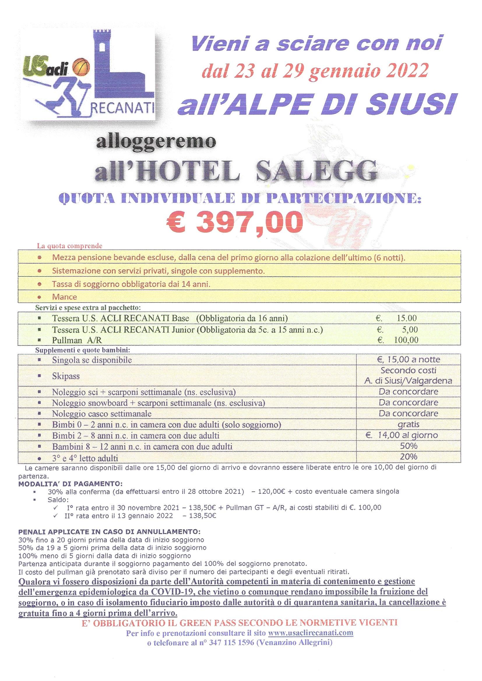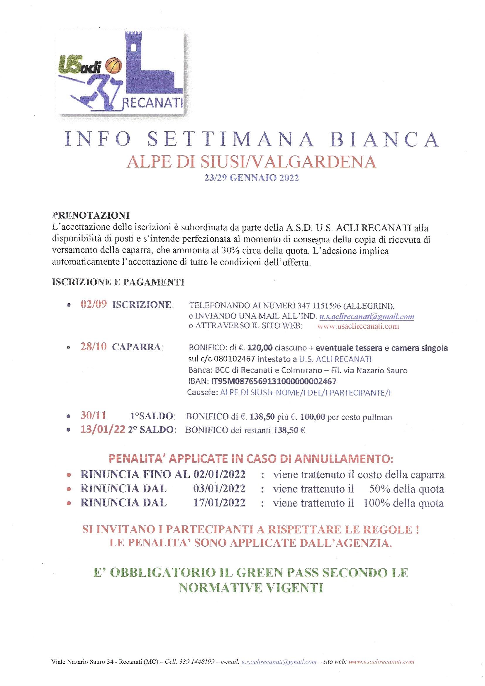 ATTENZIONE: LA PARTENZA E' PREVISTA DOMENICA 23 GENNAIO 2022 ALLE 7,55 DAVANTI LA SCUOLA MEDIA