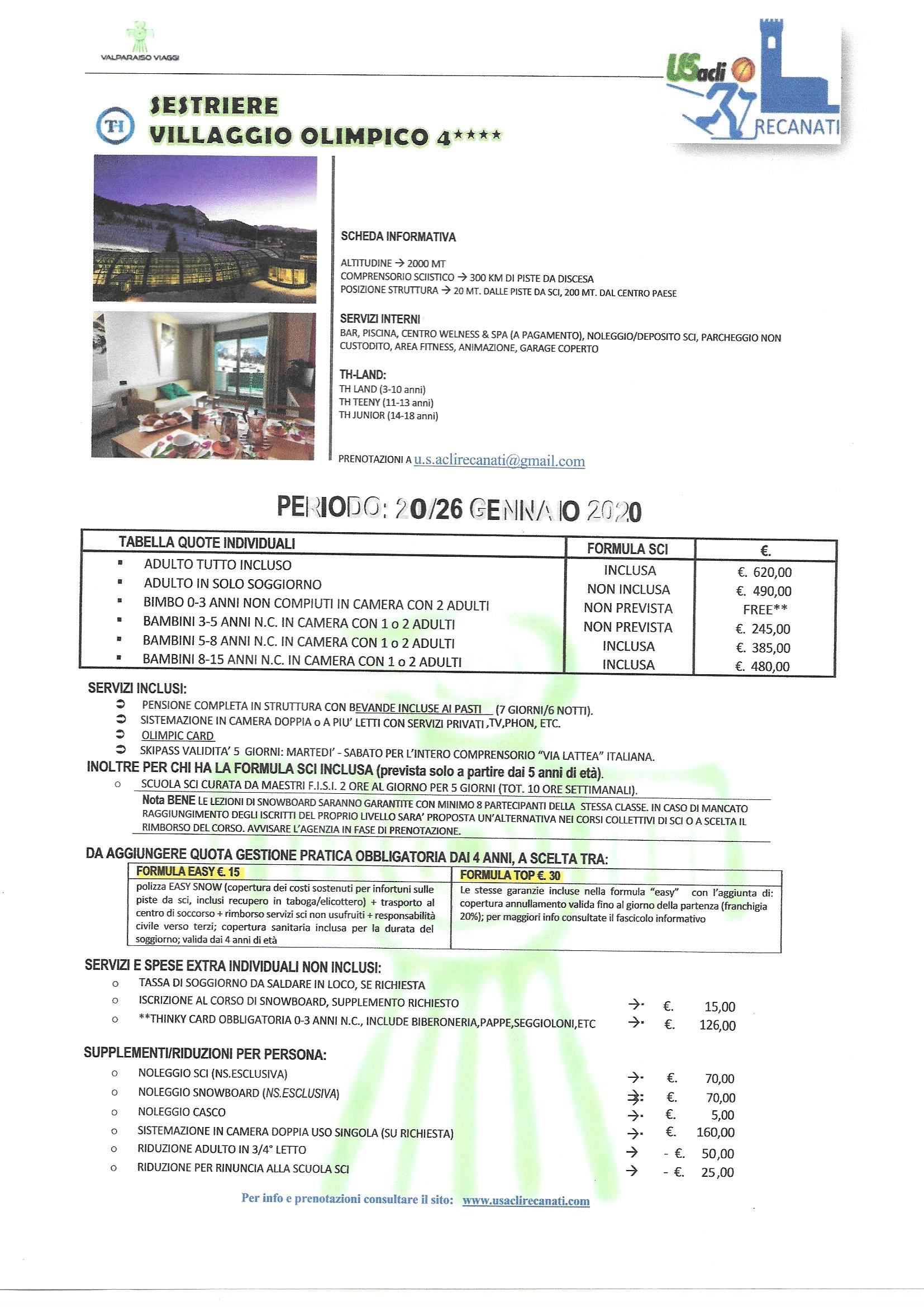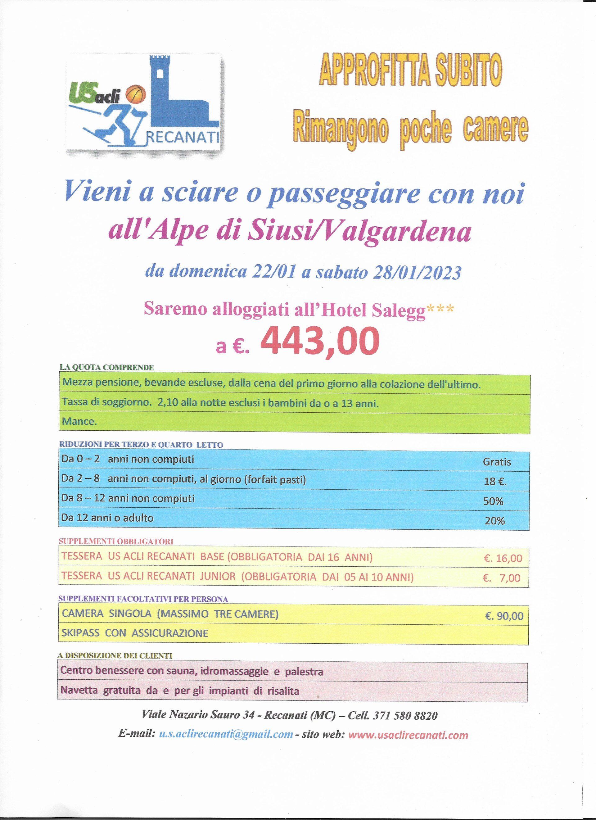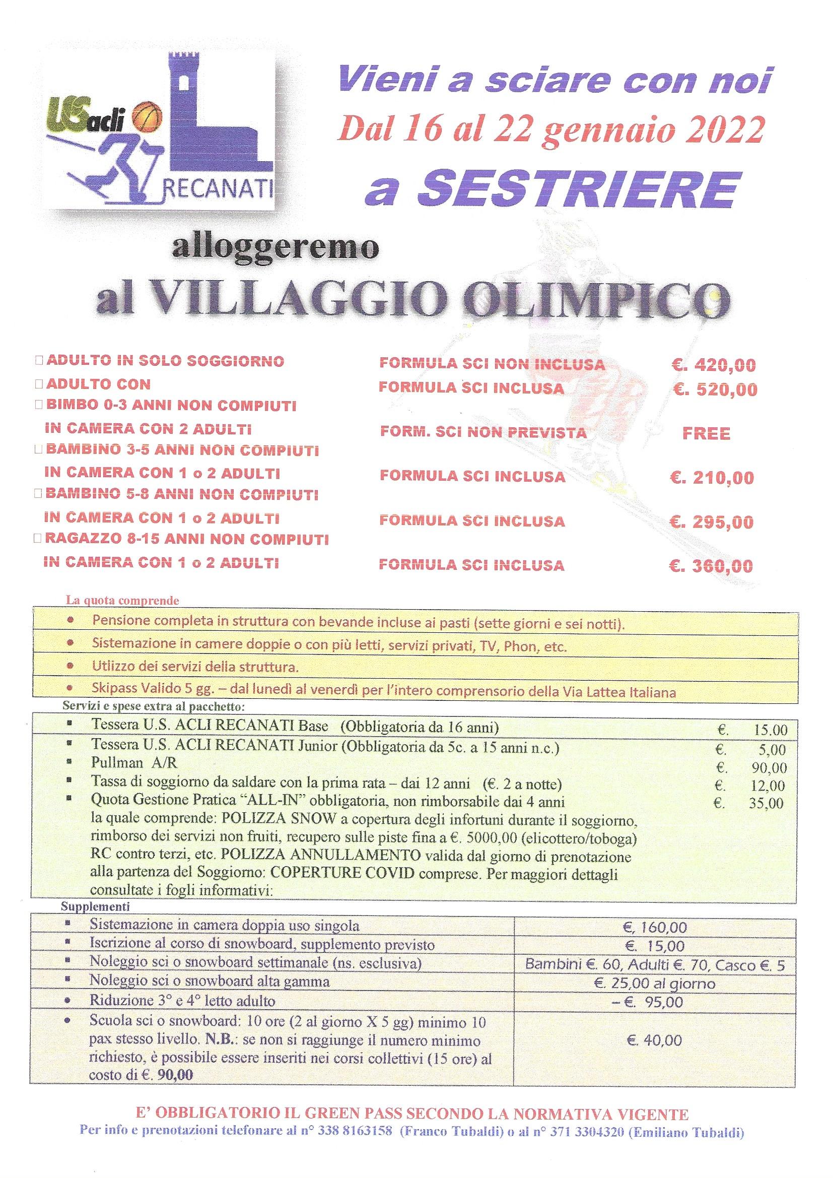 ATTENZIONE: LA PARTENZA E' PREVISTA DOMENICA 16 GENNAIO 2022 ALLE 5,30 DAVANTI LA SCUOLA MEDIA