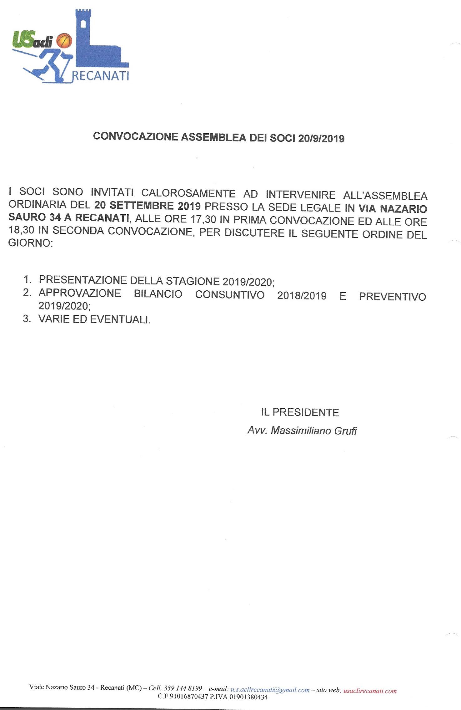 CONVOCAZIONE ASSEMBLEA DEI SOCI