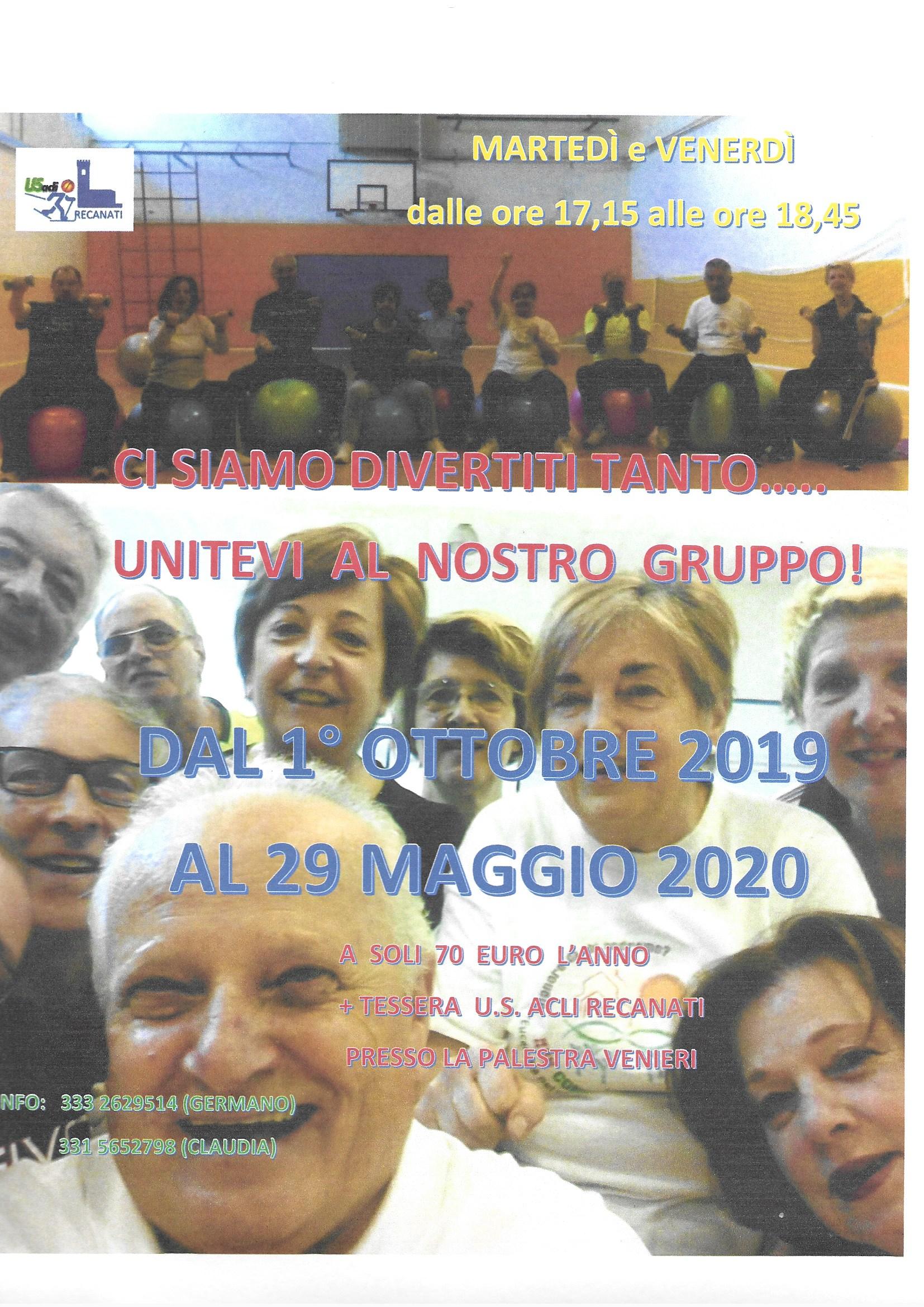 Riparte il Corso di ginnastica per adulti organizzato dalla US Acli Recanati. Quest'anno avremo la collaborazione della associazione KODOKAN Judo Recanati di Mario Mengascini - membro del direttivo - che ringraziamo per la collaborazione.